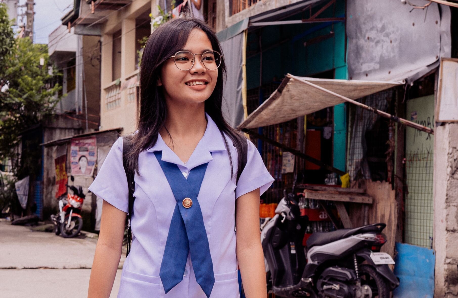 This is especially true in Caloocan City, one part of the sprawling Metro Manila area, where 18-year-old Joy lives with her family. Cats and dogs roam the concrete streets of their neighbourhood at all hours while roosters crow in cages, waiting for their next fight. Children laugh as they play basketball on makeshift courts, at ease in the ever-present humidity. Motorbikes rev their engines as they dodge people, animals and debris.
