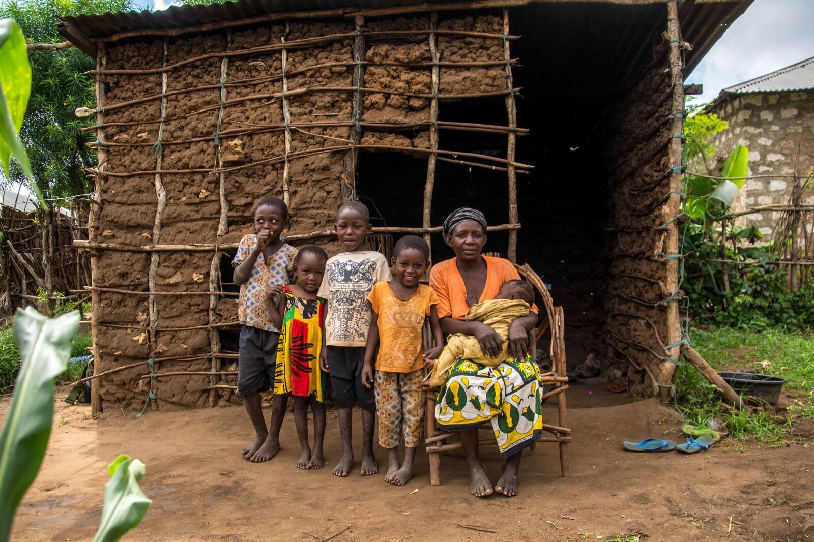 Kadzo lives on the Kenyan coast with her husband and 14 children. Their home is typical for the area: it has a dirt floor and mud walls. It's made up of two buildings: one is their kitchen, the other is where the family sleeps.